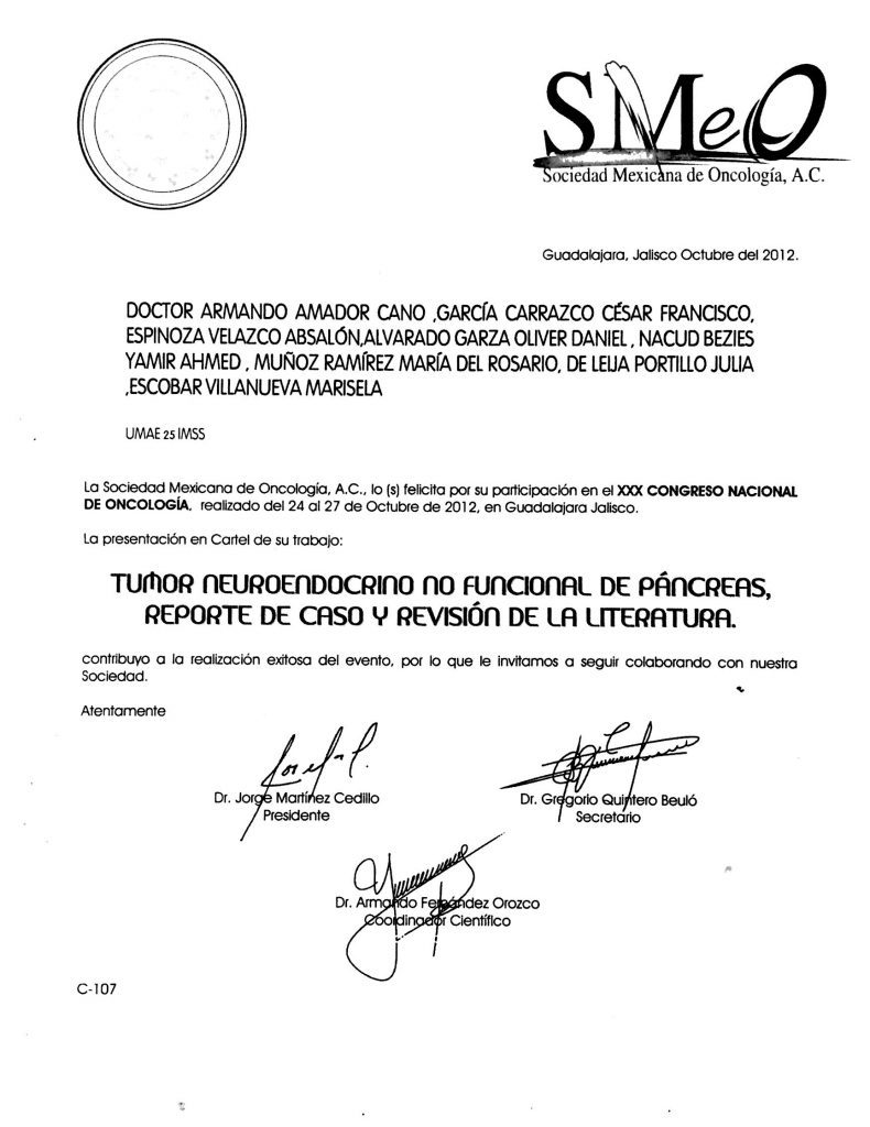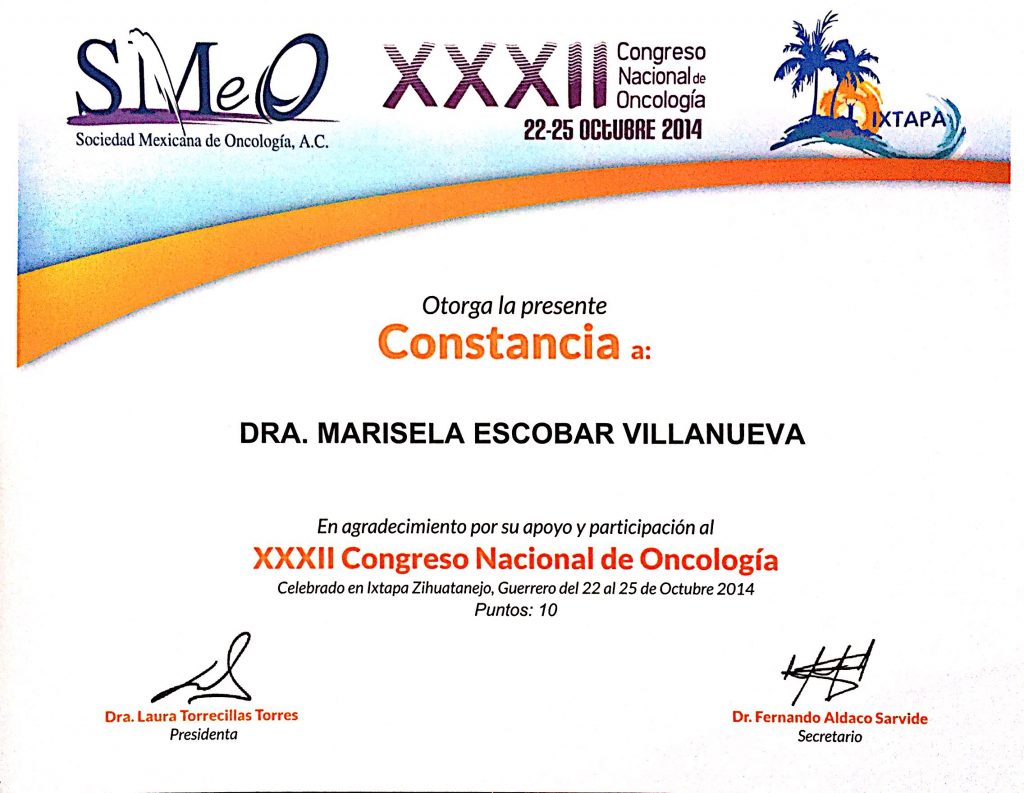 • Certificación por el Consejo Mexicano de Oncología.