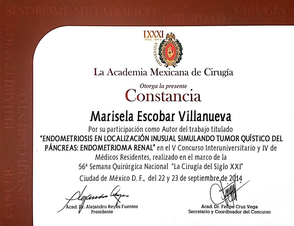 • Certificación por el Consejo Mexicano de Ginecología y Obstetricia.